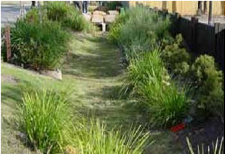 Swales https://demo-water.devel5cph.eea.europa.eu/freshwater/admin/resources/nwrm-imported/nwrm-measures-catalogue/swales https://demo-water.devel5cph.eea.europa.eu/freshwater/admin/++resource++plone-logo.svg Swales Title Swales Description Preview image No image Preview image caption Creators fullname Laszlo Cseh Contributors fullname NWRM_measure Measure sector Urban Measure summary Swales are broad, shallow, linear vegetated channels which can store or convey surface water (reducing runoff rates and volumes) and remove pollutants. They can be used as conveyance features to pass the runoff to the next stage of the SuDS treatment train and can be designed to promote infiltration where soil and groundwater conditions allow. Three kinds of swale give different surface water management capabilities:Standard conveyance swale – Generally used to convey runoff from the drainage catchment to another stage of a SuDS train. They may be lined or un-lined, depending on the suitability for infiltration. Enhanced dry swale – Includes an underdrain filter bed of soil beneath the vegetated conveyance channel to accommodate extra treatment and conveyance capacity above that of the standard swale. The underdrain leaves the main channel dry except for larger runoff events, and will prevent channels becoming waterlogged where the swale is situated on gentler slopes. A lining can also be incorporated into the underdrain if infiltration to underlying ground is not appropriate. Wet swale - Where prolonged treatment processes are required for the storm runoff, the swale’s conveyance channel can be encouraged to maintain marshy conditions by using liners to control infiltration, or by siting in an area with high water table. Standard conveyance swale – Generally used to convey runoff from the drainage catchment to another stage of a SuDS train. They may be lined or un-lined, depending on the suitability for infiltration.Enhanced dry swale – Includes an underdrain filter bed of soil beneath the vegetated conveyance channel to accommodate extra treatment and conveyance capacity above that of the standard swale. The underdrain leaves the main channel dry except for larger runoff events, and will prevent channels becoming waterlogged where the swale is situated on gentler slopes. A lining can also be incorporated into the underdrain if infiltration to underlying ground is not appropriate.Wet swale - Where prolonged treatment processes are required for the storm runoff, the swale’s conveyance channel can be encouraged to maintain marshy conditions by using liners to control infiltration, or by siting in an area with high water table.The promotion of settling is enhanced by the use of dense vegetation, usually grass, which promotes low flow velocities to trap particulate pollutants. In addition, check dams or berms can be installed across the swale channel to promote settling and infiltration. As a result, swales are effective in improving water quality of runoff, by removing sediment and particulate pollutants. In wet swales, the effectiveness is further enhanced by providing permanent wetland conditions on the base of the swale.Swales are applicable to a wide range of situations. They are typically located next to roads, where they replace conventional gullies and drainage pipe systems, but examples can also be seen of swales being located in landscaped areas, adjacent to car parks, alongside fields, and in other open spaces. They are ideal for use as drainage systems on industrial sites because any pollution that occurs is visible and can be dealt with before it causes damage to the receiving watercourse. Possible benefits with level Benefits Level ES1 - Water storage Low ES3 - Natural biomass production Low ES4 - Biodiversity preservation Medium ES5 - Climate change adaptation and mitigation Medium ES6 - Groundwater/aquifer recharge Medium ES7 - Flood risk reduction Medium ES8 - Erosion/sediment control Low ES9 - Filtration of pollutants Medium ES11 - Aesthetic/cultural value Medium PO2 - Improving status of physico-chemical quality elements Low PO4 - Improving chemical status and priority substances Low PO5 - Improving quantitative status Low PO7 - Prevent surface water status deterioration Medium PO8 - Prevent groundwater status deterioration Low PO9 - Take adequate and co-ordinated measures to reduce flood risks High PO11 - Better protection for ecosystems and more use of Green Infrastructure Medium PO12 - More sustainable agriculture and forestry Low PO14 - Prevention of biodiversity loss Medium BP1 - Store runoff Medium BP2 - Slow runoff High BP5 - Increase evapotranspiration Medium BP6 - Increase infiltration and/or groundwater recharge Medium BP7 - Increase soil water retention Low BP8 - Reduce pollutant sources Low BP9 - Intercept pollution pathways Medium BP10 - Reduce erosion and/or sediment delivery Medium BP13 - Create riparian habitat Low BP14 - Create terrestrial habitats Low BP16 - Reduce peak temperature Low BP17 - Absorb and/or retain CO2 Low Case studies Sustainable stormwater management and green infrastructure in Fornebu, Norway Leidsche Rijn sustainable urban development, Netherlands Water retention spaces, reforestation and grazing management in southern Portugal Other sector Agriculture Biophysical impacts { "value": [ { "code": "BP1", "name": "BP1 - Store runoff", "level": "Medium" }, { "code": "BP2", "name": "BP2 - Slow runoff", "level": "High" }, { "code": "BP5", "name": "BP5 - Increase evapotranspiration", "level": "Medium" }, { "code": "BP6", "name": "BP6 - Increase infiltration and/or groundwater recharge", "level": "Medium" }, { "code": "BP7", "name": "BP7 - Increase soil water retention", "level": "Low" }, { "code": "BP8", "name": "BP8 - Reduce pollutant sources", "level": "Low" }, { "code": "BP9", "name": "BP9 - Intercept pollution pathways", "level": "Medium" }, { "code": "BP10", "name": "BP10 - Reduce erosion and/or sediment delivery", "level": "Medium" }, { "code": 