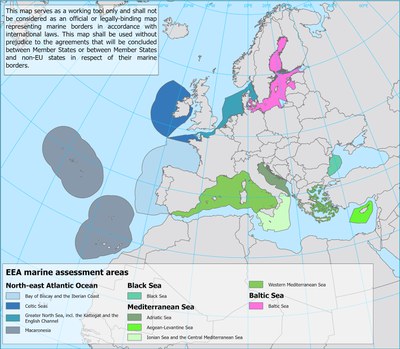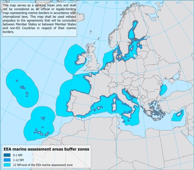 The present section makes available data and metadata of spatial datasets related with the Marine Strategy Framework Directive (MSFD) implementation, such as the marine regions and subregions, the national marine waters and the Marine Reporting Unit (MRU) provided by Member States and that represent the marine assessment areas requested by the Directive and linked to its Articles. This section offers also other spatial datasets, elaborated by the European Environment Agency (EEA) and the European Topic Centre (ETC) for statistical purposes and based on the above MSFD data.